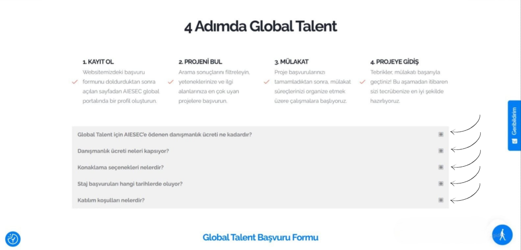 3- Başvurunu bırakmadan önce “4 Adımda Global Talent” bölümünü inceleyerek