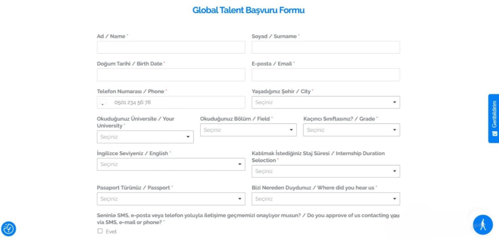 olmadan global bir iş deneyimi elde edebilirsin. Global Talent Programı, sana yurt